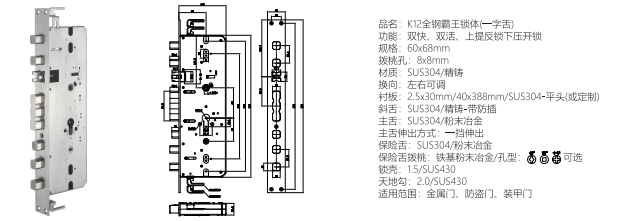K12全鋼霸王鎖體(一字舌)