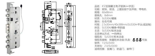 品名: K12全鋼霸王電子鎖體(字舌)